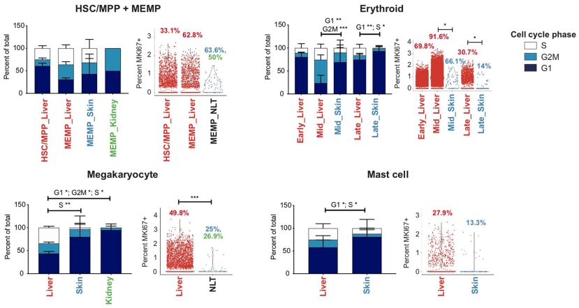 ❖ NLTs中存在巨核细胞、红系细胞、肥大细胞和MEMPs(巨核细胞-红系细胞-肥大细胞祖细胞),但是不存在HSC/MPPs(图10a);