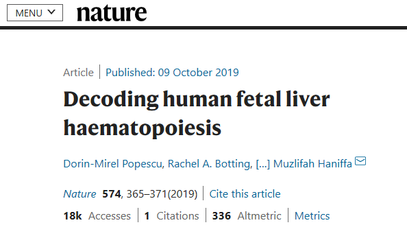 通讯作者:Cambridge大学Wellcome Sanger研究院的Sam Behjati博士和Sarah A. Teichmann教授,血液内科系和Wellcome-MRC剑桥干细胞研究院的Elisa Laurenti博士,以及Newcastle大学Muzlifah Haniffa教授。
