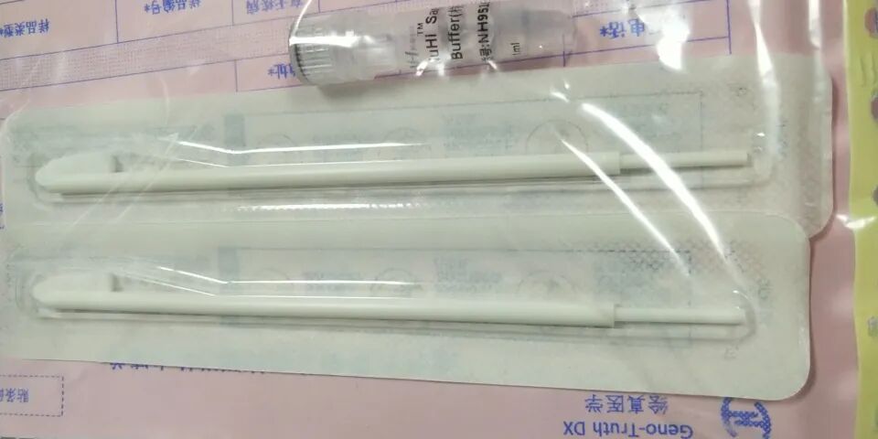 患者在采集样本之前半小时漱口,每支口腔拭子在脸颊内侧刮拭50次后放置于口腔拭子保存液中,共需2只。